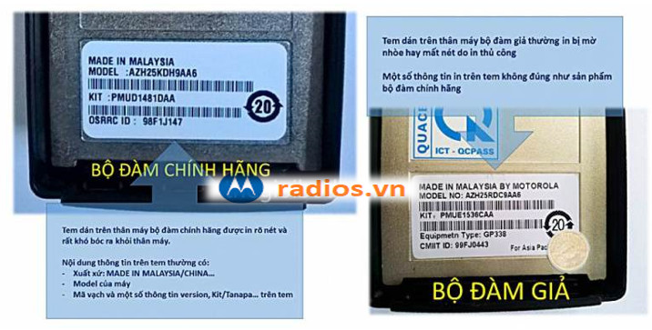 Phân biệt bộ đàm Motorola thật/ giả dựa vào tem dán trên thân máy